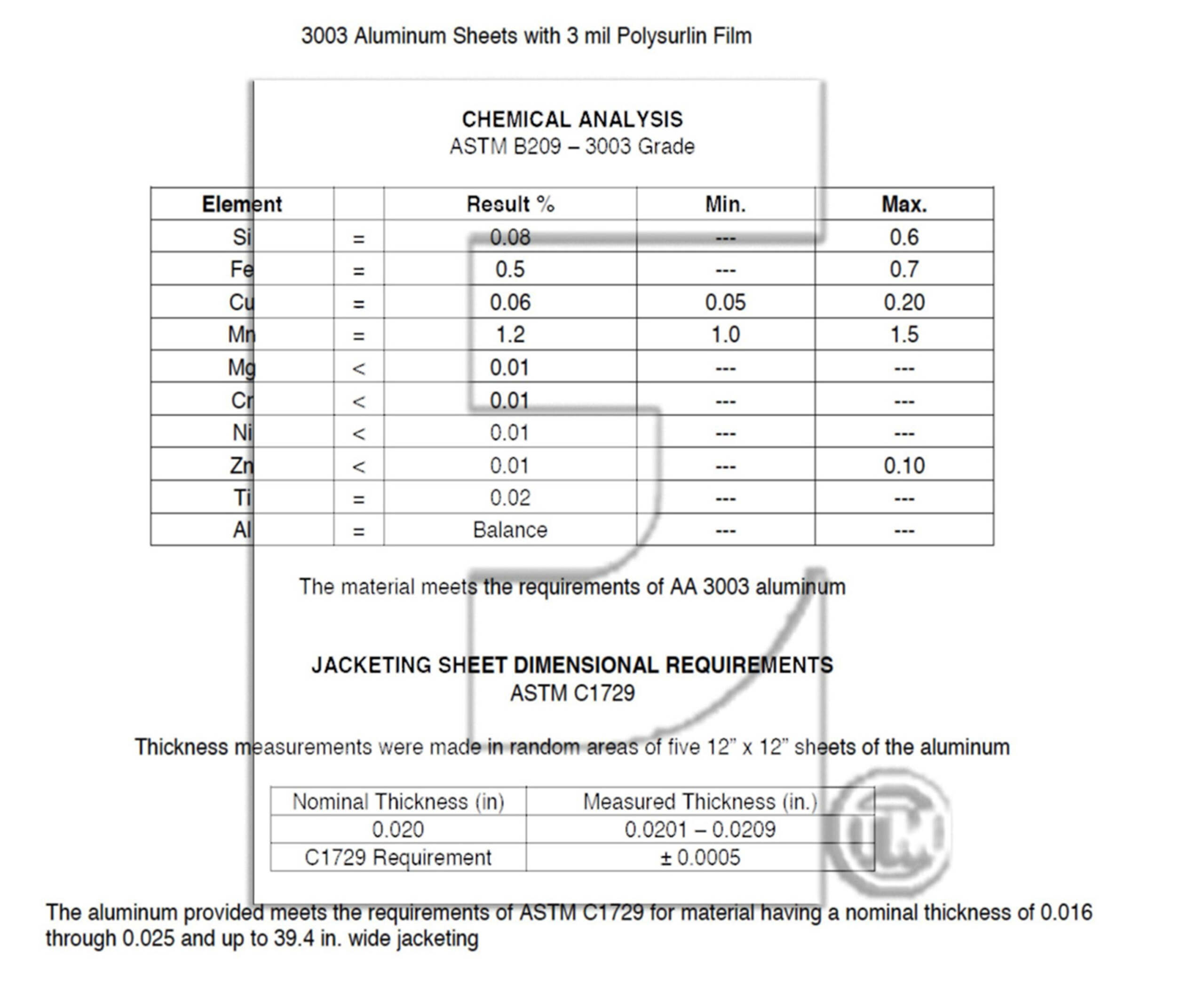 Certifications: ASTM B209, ASTM C1729 (Polysurlyn standards), and ASTM C1371